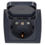 This flush-mounted socket, available in anthracite, is splash-proof and features a child safety lock for added security.