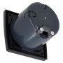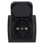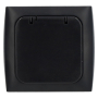 This flush-mounted socket, available in black, is splash-proof and features a child safety lock for added security.