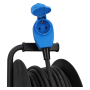The HABA cable reel with 25 metres of neoprene cable (3x2.5mm²) is built for high performance and heavy-duty use. It features a thermal switch to protect against overheating and a strong clip to secure the reel during transport. The output is equipped with a hooked CEE/Schuko coupler, while the input comes with a CEE plug. A convenient Velcro strap on the back keeps the coupler neatly stored when not in use. Thanks to its splash-proof design (IP44), this reel is ready for demanding environments.