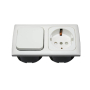 C-Line light switch and Schuko socket with Opal faceplate 2 way white - packed