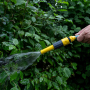 The water flow can be turned on and off with the adjustable nozzle.