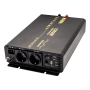 12V DC --> 230V AC with ATS (automatic transfer switch) function to AC voltage as soon as the vehicle/vessel is connected to the mains.